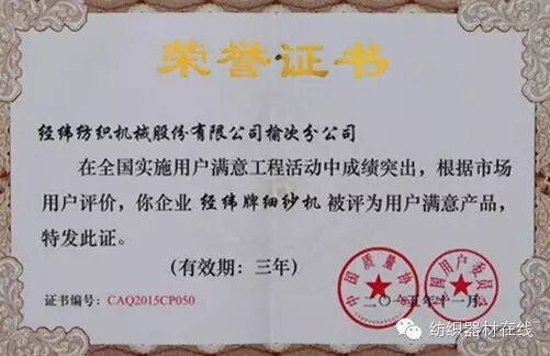 全行业唯一 经纬牌细纱机获“全国用户满意产品”殊荣