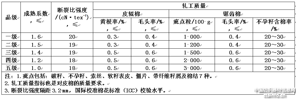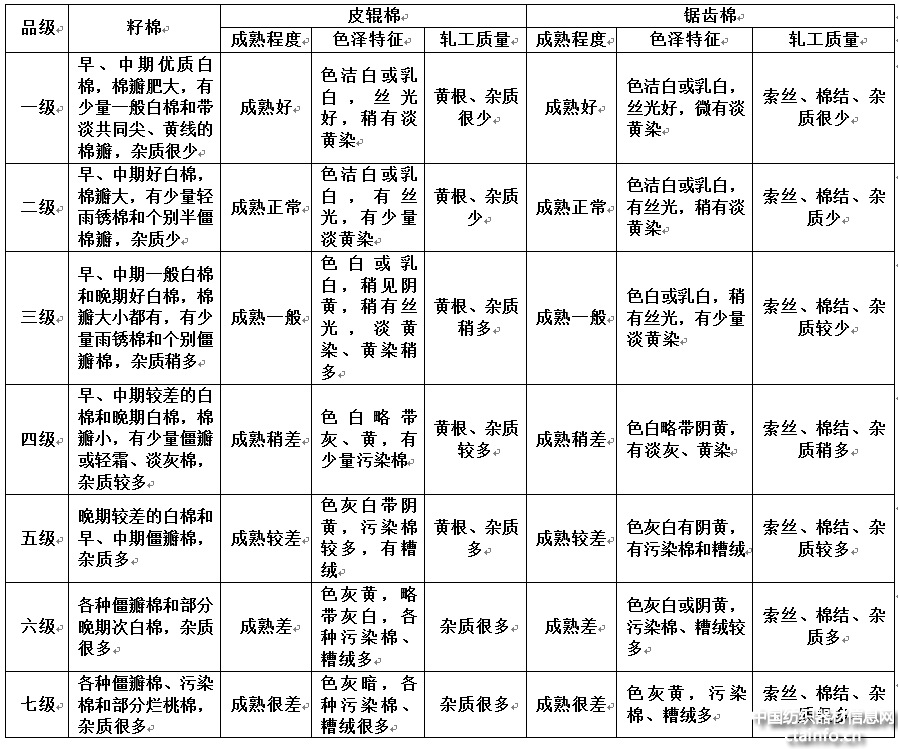 棉花品级条件见表1。