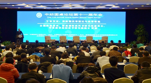 2016年1月17日,由中国纺织工业联合会主办,以“‘十三五’纺织供给侧改革与调整”为主题的中纺圆桌论坛第十一届年会在北京亚洲大酒店举行。中国纺织工业联合会会长王天凯、原会长杜钰洲、副会长兼秘书长高勇、副会长孙瑞哲、党委副书记陈伟康、纪委书记王久新、会长助理陈大鹏等领导,全国政协委员著名经济学家贾康、中国经济景气监测中心主任潘建成、中国工商银行总行信贷与投资管理部副总经理杨海涛等嘉宾出席了本次论坛。