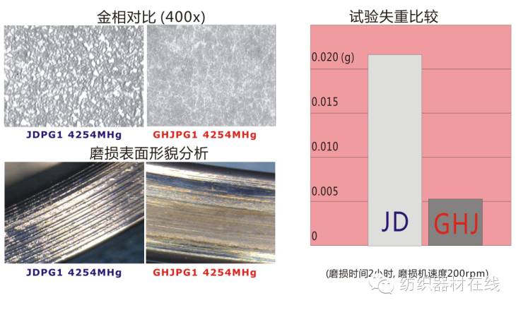 GHJ高耐磨精密钢领与JD精密电镀钢领对比: