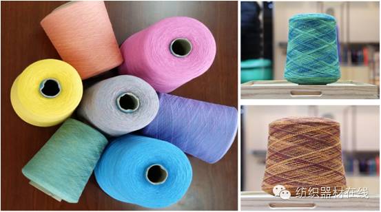 色纺纱是先将纤维染成有色纤维,然后将两种或两种以上不同颜色的纤维经过充分混合后,纺制成具有独特混色效果的彩色纱线。