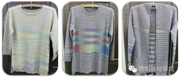 b) 时尚性:在同一根纱线上显现出多种颜色,色彩丰富、饱满柔和,具有独特混色效果和色彩层次的纱线。面料具有朦胧的立体效果,颜色含蓄,自然、有层次;