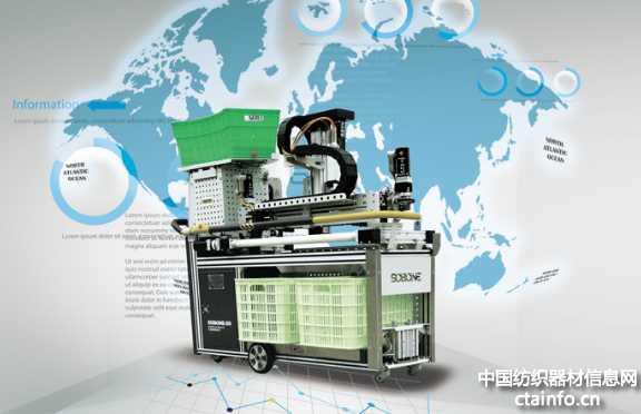 松宝S9型环锭纺智能落纱机采用了先进的可编程自动化运动控制器(PAC)电气控制系统和交流伺服电机驱动控制系统,机械抓手采用了三维直角坐标机器人控制平台技术,实现了拔管、插管、返回的全程自动化。主要解决了三大问题:一是方便老机改造,无需改变锭子和筒管;二是服务于多台落纱,最大限度地利用了落纱机使用效率;三是完全取代了人工拔、插落纱环节,减轻了落纱工的劳动强度,具有操作简便、使用灵活、成本低等特点。