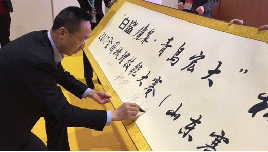 光山白鲨针布有限公司董事长张永钢先生在启动画轴上签名