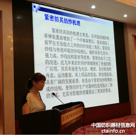 全国纺织器材科技信息中心副主任、《纺织器材》杂志社常务副社长白雪女士做了《我国主要纺织器材技术发展现状和发展策略思考》的报告。报告从我国近几年纺织形势、器材专件企业发展速度和规模,主要器材专件发展现状和技术创新,国内外产品存在的主要差距,国产纺织器材专件的发展思考几个方面展开,总结了器材专件近几年取得的成绩与创新:① 传统纺织器材专件获重大突破:如金属针布和弹性针布齿形重新设计,钢筘导纱通道显著改善等;② 新型纺纱技术催生了一系列新器材新专件,如集聚纺纱罗拉、低扭矩纺纱加捻器等;③ 新型纺织器材专件不仅用了新设计,还应用了新材料,如特种合金钢;④ 走“创新驱动,质量为先,绿色发展,结构优化”和“智能化、工业化两化融合”的方针。报告指出,今后,要坚持市场引领同时推动市场;标准引领同时倒逼技术创新;加强基础材料研发,为提高产品可靠性和耐用性打好基础;“十三五”期间,要加大研发新材料、新工艺、积极采纳新技术,全方位提升纺织器材专件的品质、精度和可靠性。