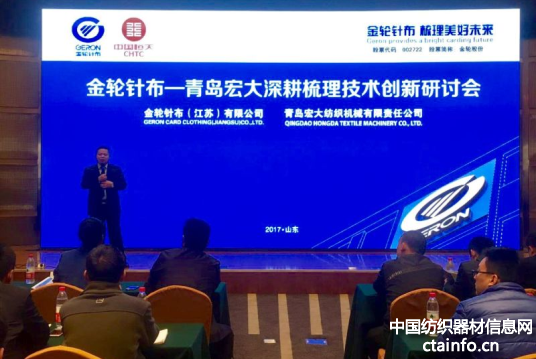 3月18日,在山东淄博,金轮针布携手战略合作伙伴——经纬纺机旗下的青岛宏大,召开了“2017金轮针布—青岛宏大深耕梳理技术创新研讨会”。来自魏桥、鲁泰、恒丰、岱银、孚日、银仕来、三阳、大海、冠鑫、华润、天虹、百隆、华源、富华、青纺联等86家企业逾300多名客户参加了本次大会。