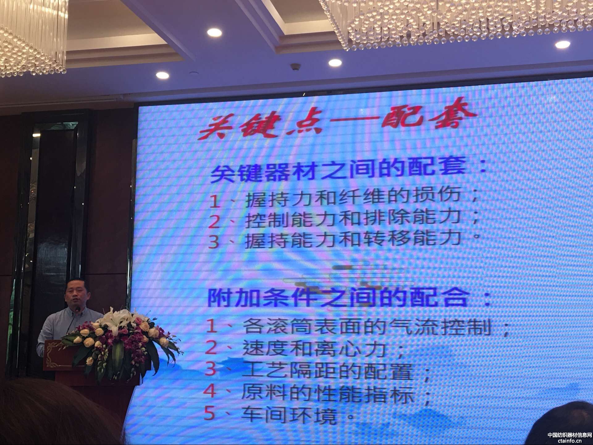 会上,特吕茨勒纺织机械(上海)有限公司经理刘古立做了《梳棉机净化纤维作用的探析》的报告,行业专家孔宪生做了《梳棉工序加工高含杂机采棉的工艺措施》的报告,德州恒丰集团技术中心总经理、总工程师刘玉庆做了《国产机采棉针布配套及梳理工艺研究实践》的报告,卓郎(常州)纺织机械有限公司总经理助理杨巧云针做了《梳棉机后部结构的特性比较与分析》的报告,行业专家陆惠文做了《关于梳棉后部工艺的探讨》的报告。100多名参会代表就目前梳理领域相关的热点、焦点、难点问题进行切磋交流,加快对梳理领域新技术、新产品、新工艺的消化吸收及推广应用,为广大棉纺企业提升梳理技术水平、解决梳理难题提供指导。