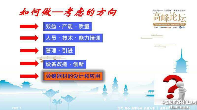 4月16日,西子湖畔,在由中国纱线网主办、金轮针布(江苏)有限公司协办的第三届“金轮杯”全国梳理技术高峰论坛上,金轮针布(江苏)有限公司技术总监肖光伟在《梳理器材研究的新思路和新方向》的报告中回答了这些问题。