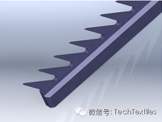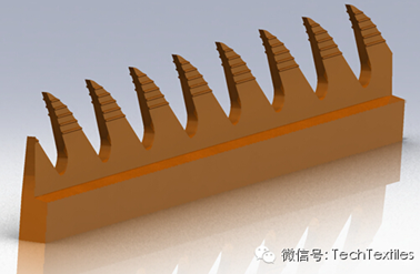 台阶式强力道夫工作辊针布是通过工作面上的水平或稍倾斜的台阶“锁住”纤维,实现对纤维的强力控制。