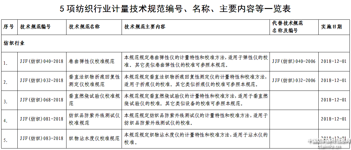 附件2:5项纺织行业计量技术规范