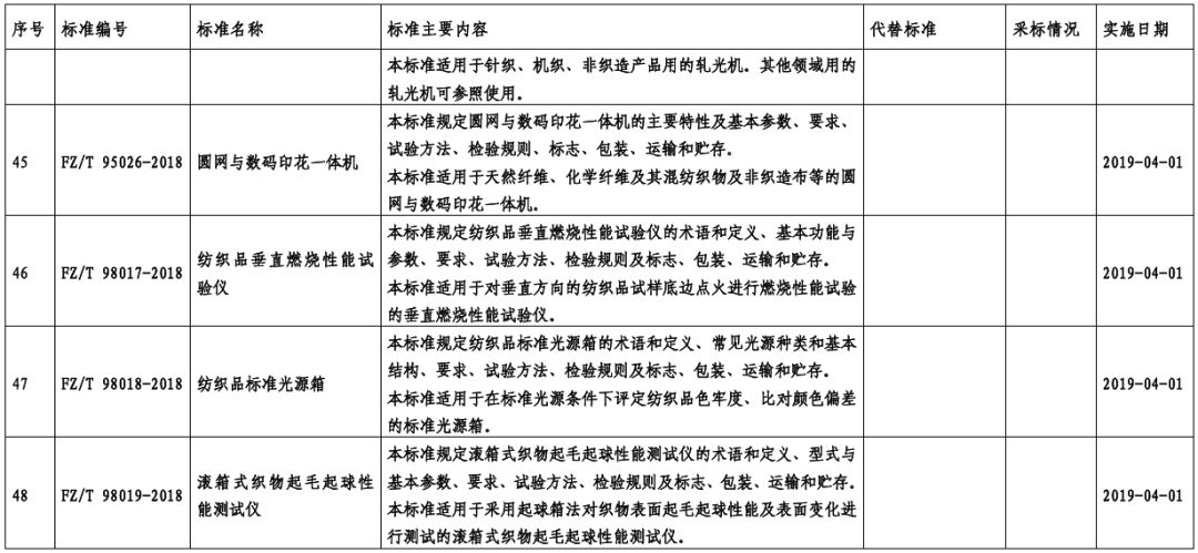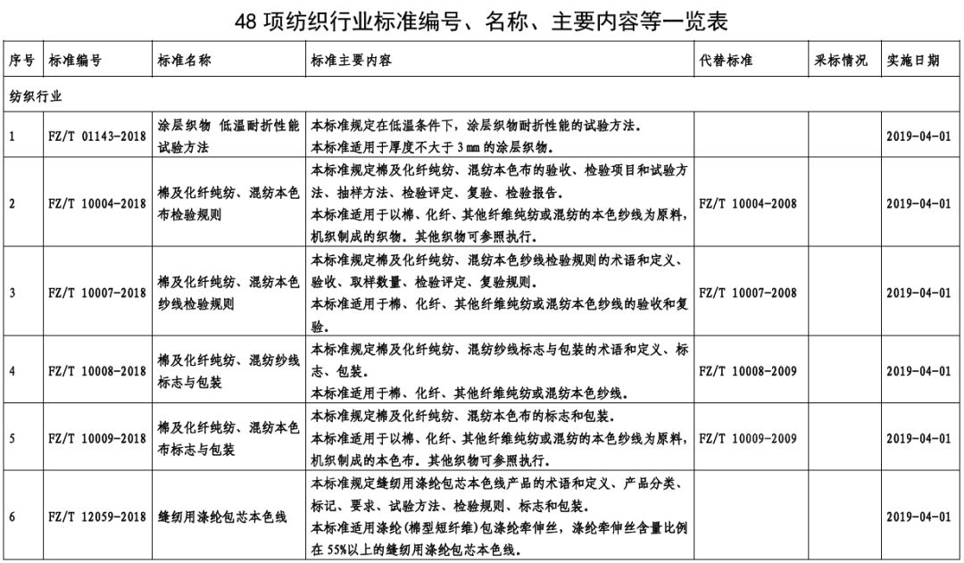 附件1:48项纺织行业标准(点击图片放大查看更清楚)