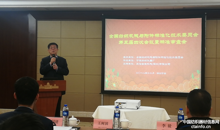 全国纺织机械与附件标准化技术委员会第五届四次会议暨标准审查会于2018年12月18日在浙江宁波召开。中国纺织机械协会会长王树田,副会长、全国纺机标委会主任委员李毅,中国纺织工业联合会科技发展部标准处副处长王国建,全国纺机标委会副主任委员李新奇、陆忠,秘书长王静怡等领导出席了本次会议。会议由王静怡秘书长主持。