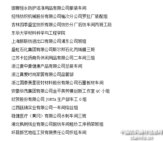 2018年4月16日,中华全国总工会将2018年全国五一劳动奖和全国工人先锋号拟表彰人选(集体)予以公示。据统计,2家纺织企业入选全国五一劳动奖状拟表彰名单,19名纺织人入选全国五一劳动奖章拟表彰名单,16家纺企、高校入选2018年全国工人先锋号拟表彰名单。