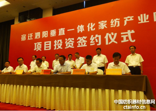 8月30日,中国纺机集团与江苏泗阳县人民政府、苏美达集团、海欣纤维、恒天化纤家纺、嘉泰纺织,在泗阳县签署宿迁泗阳化纤产业垂直一体化家纺产业园项目投资签约协议。