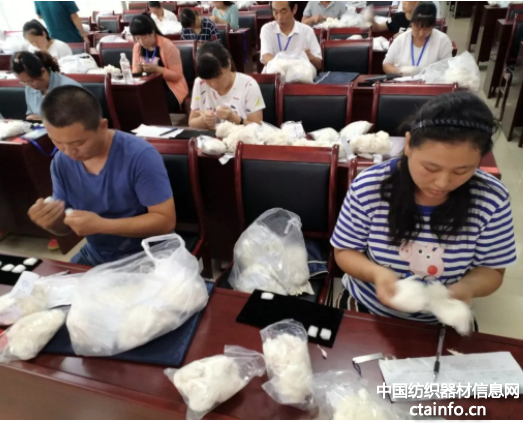 近日,来自山东滨州各地的63名棉花质量检验人员,参加了滨州市棉花质量检验技能竞赛。山东魏桥纺织女工李晓红力挫群雄,夺得第一,在场专家