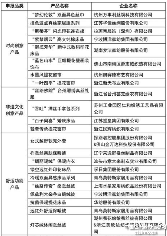 11月20—26日,本着公平、公正、公开的原则,将评选出的创新产品在工业和信息化部、中国纺织工业联合会、中国纺织信息中心、中国服装协会、中国家用纺织品行业协会、中国产业用纺织品行业协会的官方网站进行公示。