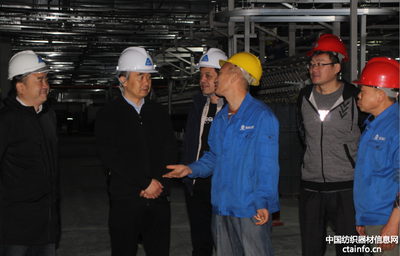 11月6日,经纬智能纺织机械有限公司董事长、总经理管幼平到武汉裕大华纺织有限公司进行项目调研,武汉裕大华纺织服装集团有限公司董事长万由顺、总经理卫江及双方项目相关负责人陪同。双方一行首先到设备安装现场进行了参观,管总详细了解了设备安装、调试等具体情况,并对安装工作给予了高度的肯定,也从安全和设备安装质量方面提出了要求。