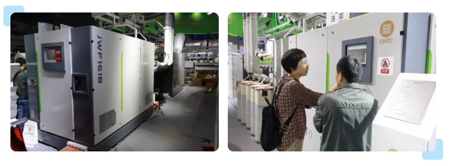 ▲2018年上海纺机展上,JWF1618型高速转杯纺纱机受热捧