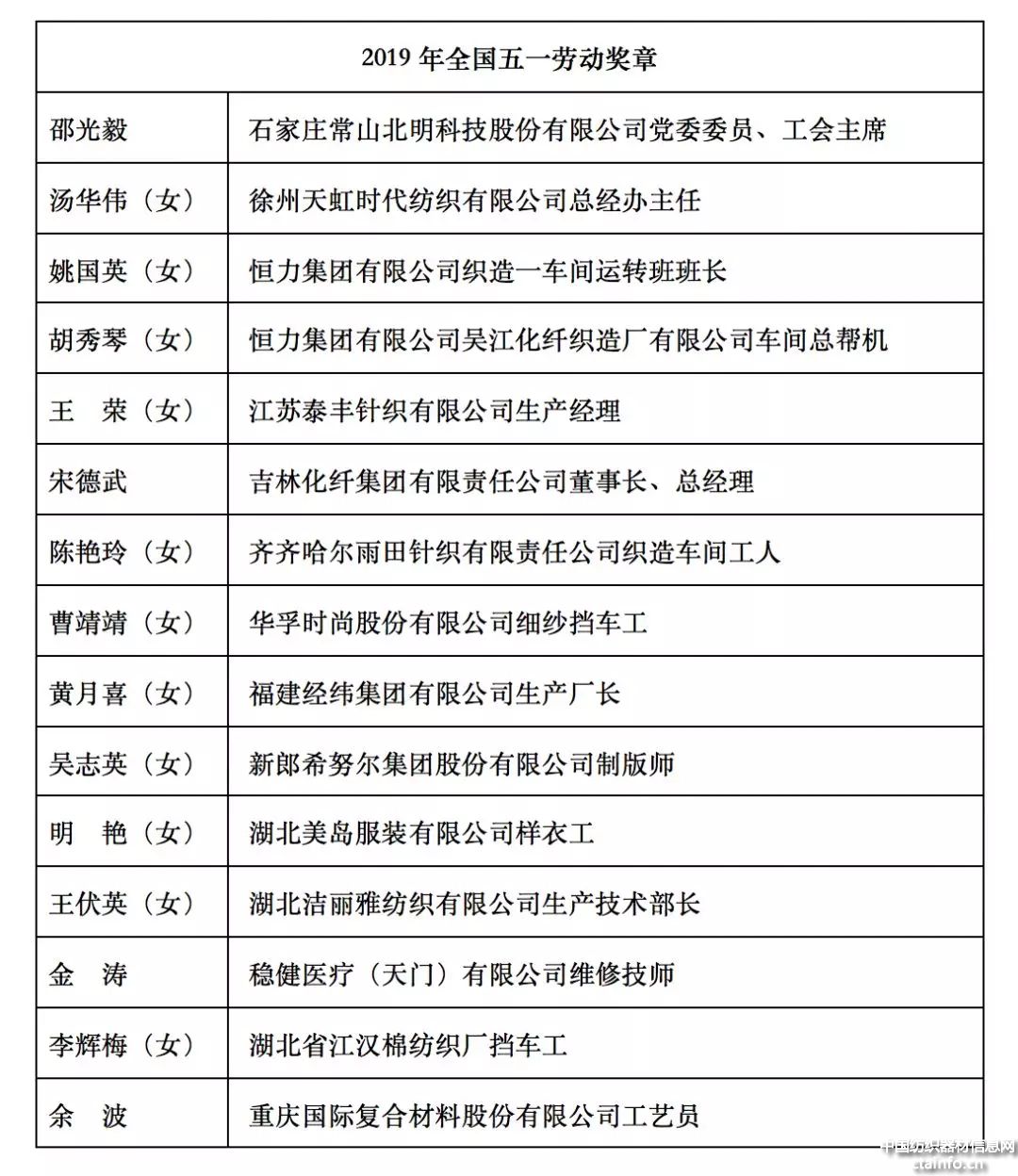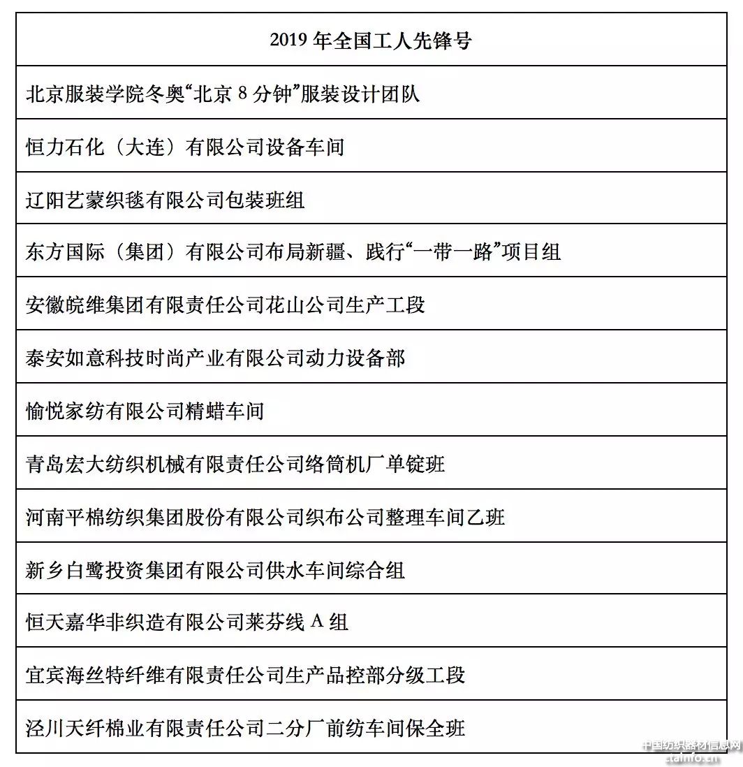 2019年全国五一劳动奖、工人先锋号名单公示!纺织业有谁?
