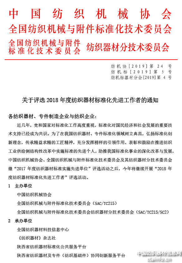 SO,如果您满足以上条件,快来参与“2018年度纺织器材标准化先进工作者”评选活动吧!