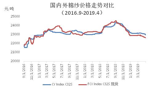 本月内外棉纱价格与上月相比较小幅下跌。据调查,国产32支纯棉纱4月均价为23060元/t,较上月下降80元/t,跌幅0.34%,较去年同期下跌34元/吨,跌幅0.01%;进口32支纯棉纱月均价为22727元/t,较上月下跌152元/t,跌幅0.66%,较去年同期下跌534元/t,跌幅2.29%。本月棉纱销售转慢,纱厂成品库存上升,对外报价有所下调。