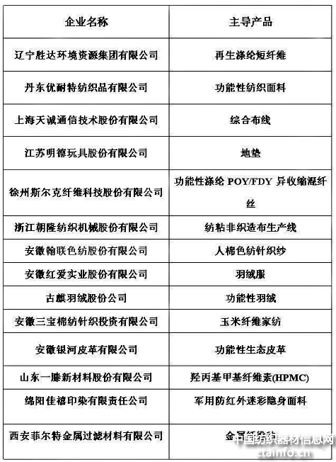 第一批专精特新“小巨人”企业名单(纺织部分)