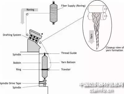 环锭纺纱是现时市场上用量最多,最通用的纺纱方法。