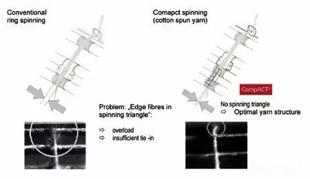 集聚纺的目的是在纱线加捻前使纤维之间尽可能平行并接近,对于高质量的集聚纺纱线这是重要的评判标准。使纤维尽可能平行并保持一致在加捻前是其优势的前提。