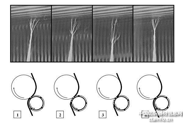扭妥纺也称为低扭矩纺纱,近年来已开始投入产业化生产。扭妥纺是在传统环锭纺的纺纱段加装一个加捻装置,通过加捻作用,影响纺纱三角区的纤维张力分布,从而改变纤维在单纱中的形态和排列分布,使纱中纤维产生的残余扭矩相互平衡。扭妥纱具有纤维取向小、纤维转移幅度大、纤维片段局部反转、纤维聚集在单纱内层等特点。