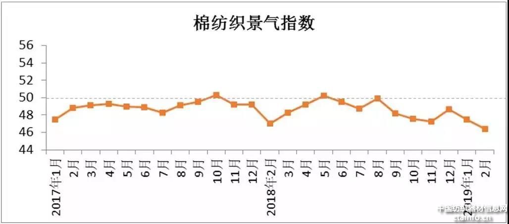 说明:中国棉纺织行业景气指数采集自全国200多家棉纺企业,通过对多个主要指标加权计算得出,当指数高于50,表示棉纺行业景气程度向好,低于50则表示景气程度欠佳。