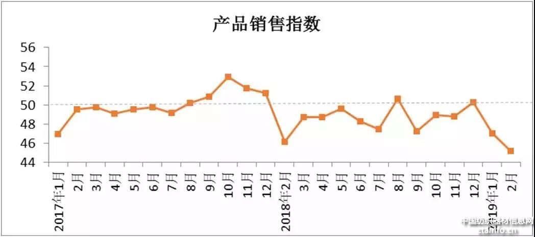2月企业经营指数44.90,与1月相比下降1.69。2月,受春节假期影响,企业生产销售放缓。春节后用工减少已成普遍现象,企业反映工人工资水平不断提高,加上社保新征收体制改革后,预计企业人工成本将大幅增加。为此,企业积极进行设备改造升级,但被融资难、融资贵等一系列问题所困扰,市场信心受到打击。目前,中美磋商取得进展,但最终仍不明朗,市场对于储备棉抛储的传闻不断,行业高度关注,希望国家能尽快释放信号,稳定市场。