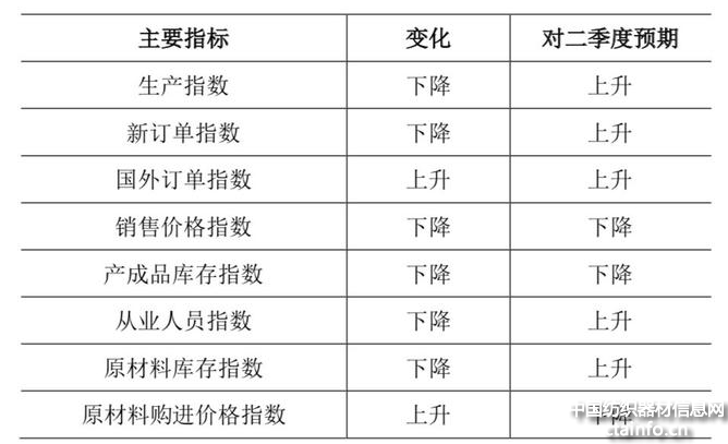 整体来看,受市场放缓等因素影响,我国纺织行业总体景气指数符合预期。而随着国内市场环境逐渐改善、相关政策发挥政策效果等,二季度或将有回升空间,企业对二季度运行信心有所增强。具体,2019年一季度较2018年四季度的主要分项指标变化情况及对二季度的预期如下: