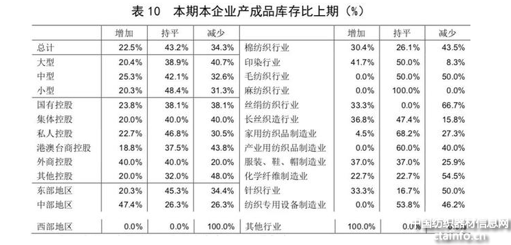 从分行业来看,丝绸、化纤、针织和毛纺企业产成品去库存略多,产成品库存下降的企业占比超过50%。