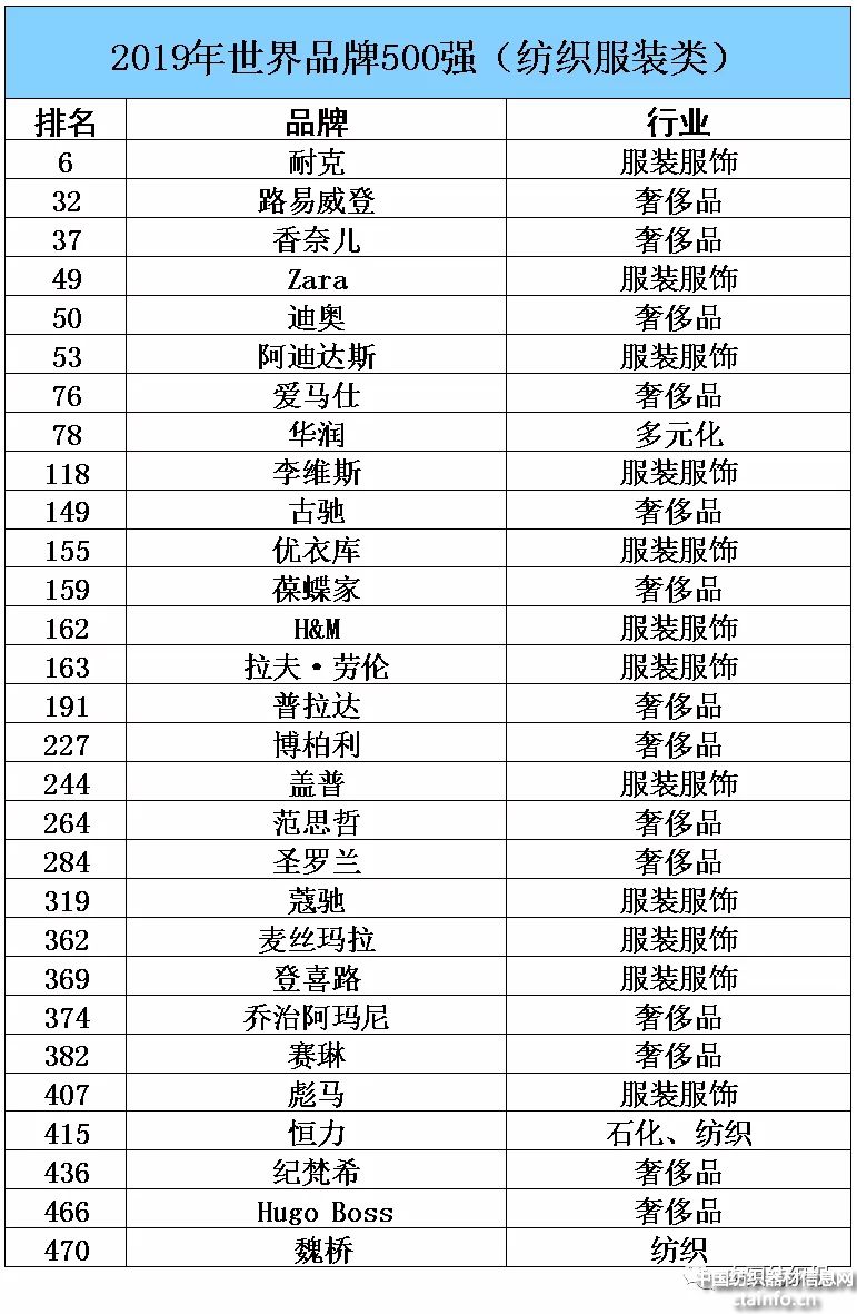 2019年世界品牌500强揭晓,3个涉纺中国品牌上榜!