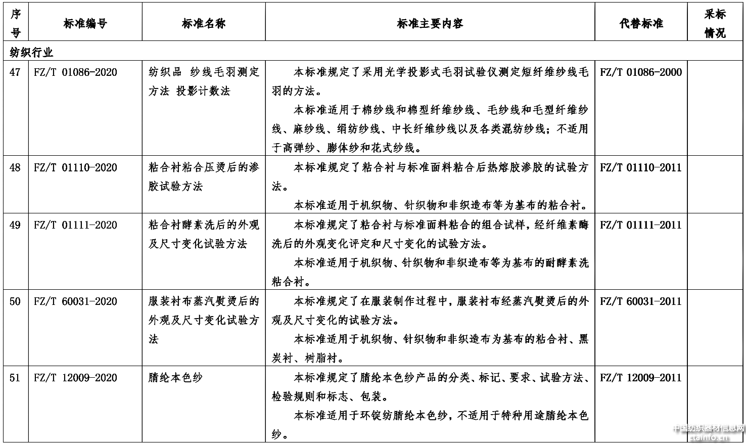 附件:45项纺织行业标准名称及主要内容