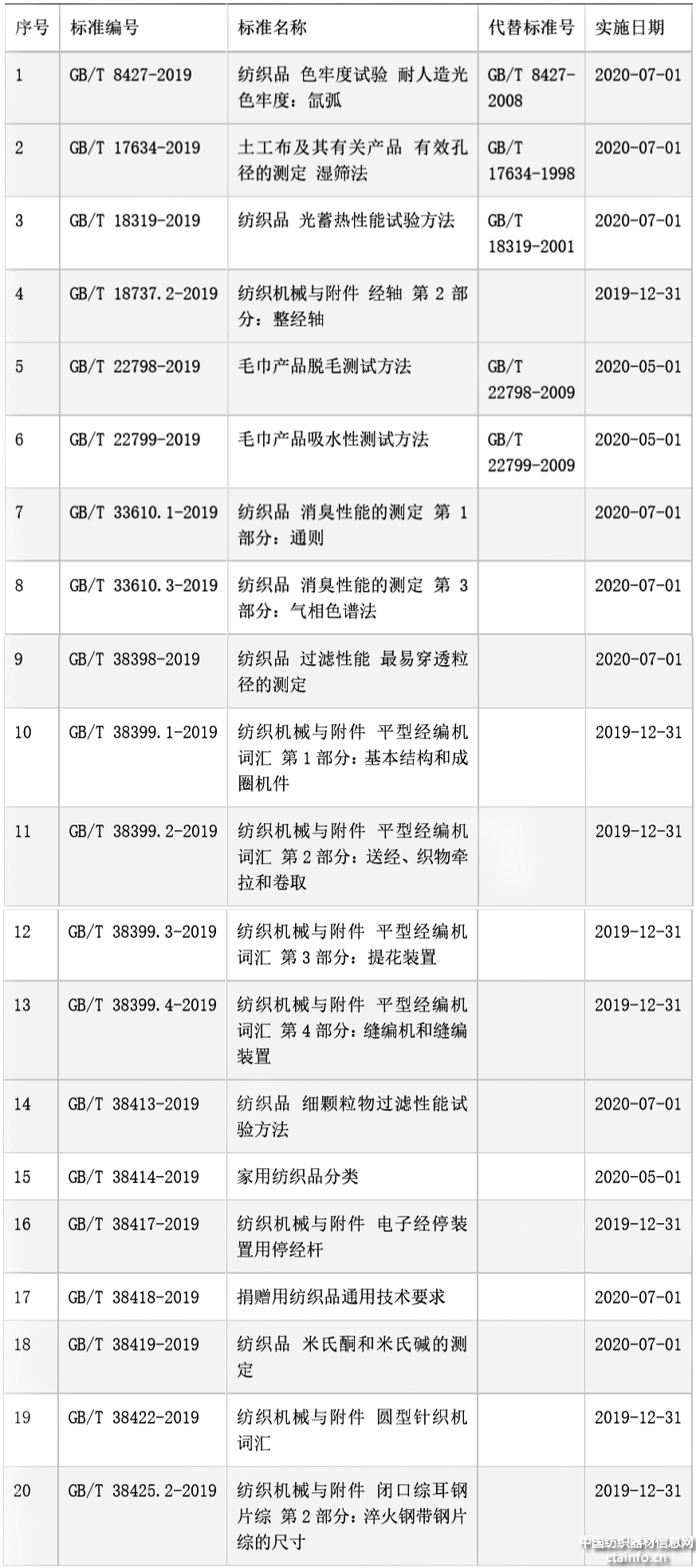 日前,国家市场监督管理总局(国家标准化管理委员会)批准《非自行指示秤》等169项国家标准,其中包含20项纺织类国家标准。