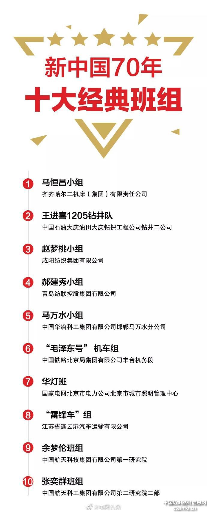 喜讯|“新中国70年最具影响力班组”名单出炉!