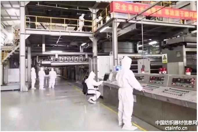 中纺新材料有限公司曾在2003年抗击非典时研发生产医用一次性防护服面料受到国务院应急保障表彰。面对此次疫情,中纺新材料大年初一迅速组织员工准备开工复产,一名名共产党员挺身而出,千里返程上演最美“逆行”!为了给战斗在最前线的医护人员提供及时有效隔离面料,鲜红的党旗在生产一线高高飘扬!
