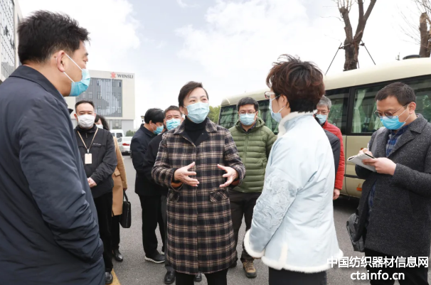 万事利集团董事长、万事利丝绸文化股份董事屠红燕向王文序副省长、柯吉欣副市长一行重点就集团旗下各大产业板块复工复产情况和口罩转产情况做了介绍。