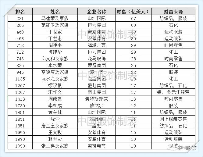 相关热词搜索:纺织服装,福布斯