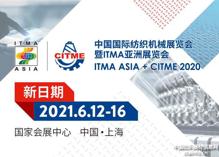 2020年中国国际纺织机械展览会暨ITMA亚洲展览会延期至2021年6月12-16日在国家会展中心(上海)举办。