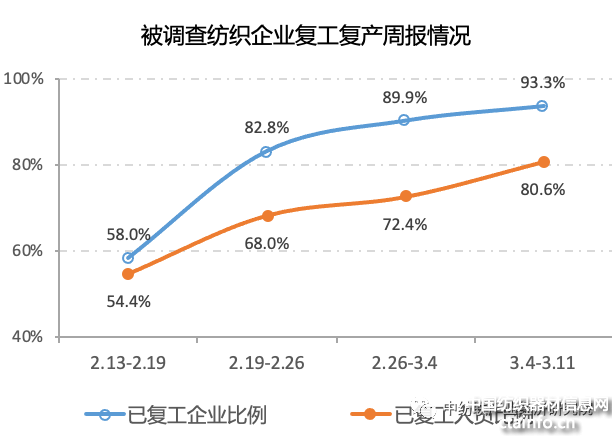 中纺联行业调查:纺织行业复工复产情况进一步向好