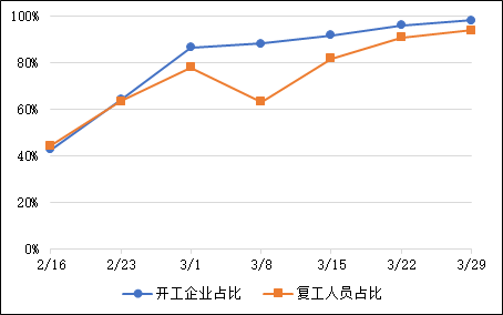 注:填报数据的大企业为主,统计得到的企业开工率预计比实际情况高。由于每周调查的企业会有所不同,相关结果仅供参考。