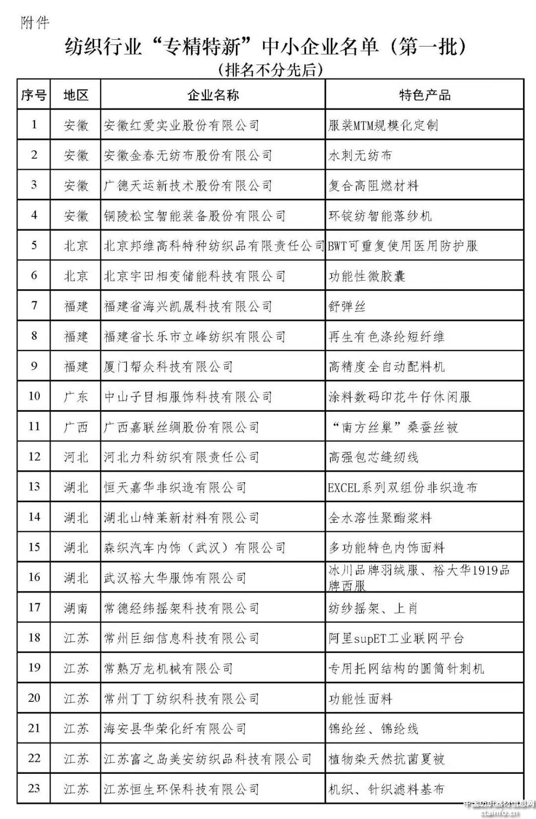 纺织行业的发展亟需“专精特新”中小企业作为“稳定器”实现“六稳六保”。高质量发展也离不开广大“专精特新”的中小企业做支撑。中纺联对外发布了专精特新中小企业名单。