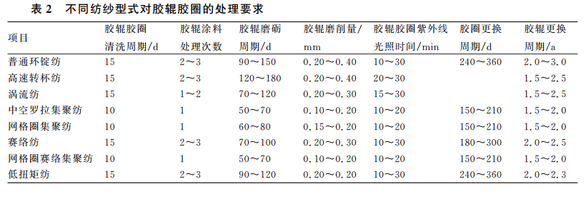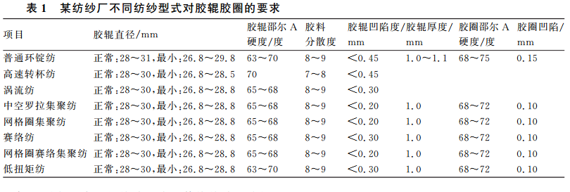 不同的纺纱型式因生产车间的温湿度要求不同,对胶辊胶圈的质量控制要求不同,对胶辊胶圈的影响也不同,胶辊胶圈的龟裂、磨损、损伤、损坏程度也存在明显差异。