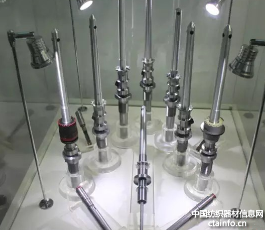 河南二纺机 河南二纺机股份有限公司在本届展会上,展出了其高性能、新型结构的高速锭子,以及新推出的短车集体落纱改造配用锭子、带有新型夹纱装置锭子、新型锭子加油机等。新型结构锭胆的高速锭子具有高速、节能、省油、少维护的优势;短车集体落纱改造配用铝套管锭子配用不同结构锭胆,适用不同的卷装(160 mm~250 mm),满足短车集体落纱细纱机配套锭子改造方案需求。更有特制和专门设计的锭子,满足纺纱向自动化方向发展的需求。