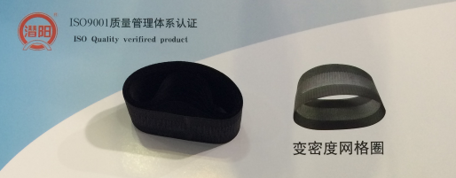 为此,安徽八一研发了变密度网格圈,该产品的原理是“集聚不牵伸”,因为集聚区有牵伸势必导致成品纱条干均匀度的破坏。经过反复探索、研究,安徽八一成功研发出创新型专利产品——变密度网格圈,其专利号为ZL200320122255.2,专利名为《变密度集束网格圈》。该网格圈在宽度方向划分为工作区和传动区,传动区采用高密度织造,因而厚度大于中间的工作部分,执行传动功能。在功能区分上,不同功能区域可以采用不同结构,使网格圈功能结构更加科学合理。