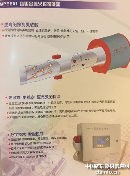 安普科技有限公司自1992年以来,一直致力于国内纺织行业红外防火技术的研究和应用,解决了中国纺织行业长期存在的“易燃”难题,为纺织企业做到了防患于未“燃”,奠定了安普在中国市场的主导地位。主要产品有金属探除器、火花探除器等系列产品,获瑞士立达仪器,经纬纺机等众多国内外纺机企业的一致好评。