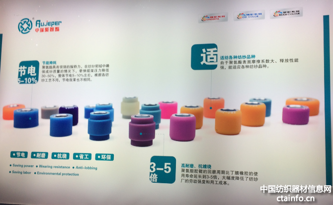 中外合资中瑞聚氨酯科技有限公司(H2D04)专业生产环锭纺、集聚纺、涡流纺、气流纺、加弹机、纺织印染等六大纺织领域的聚氨酯胶辊,先后开发出精彩、神彩、梦彩三大系列产品,精彩主要针对环锭纺,神彩主要针对集聚纺,梦彩主要针对差别化纺纱。