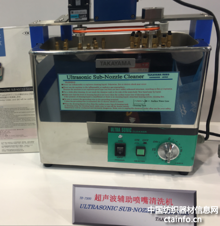 此次展会,在高山纺器的展台上,吸引小编眼球的是高山纺器推出的机织辅机系列产品,包括超声波辅助喷嘴清洗剂、机上钢筘除尘机、便携式气流检测仪、辅助喷嘴的检测仪、超声波钢筘清洗机。